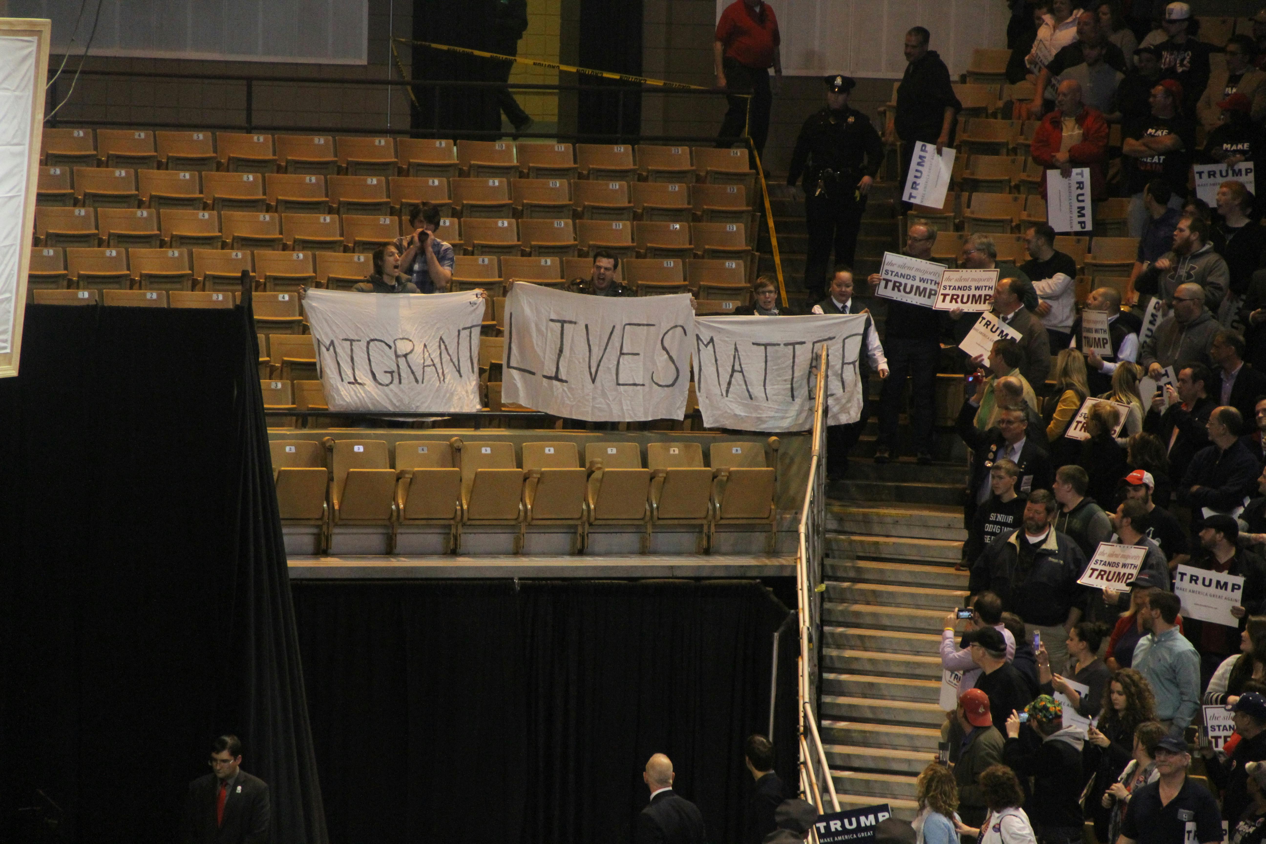 Even inside the DCU Center, Trump could not escape the protestors. These unhappy attendees attracted a lot of attention, but were whisked out of the arena by security after only a few seconds.