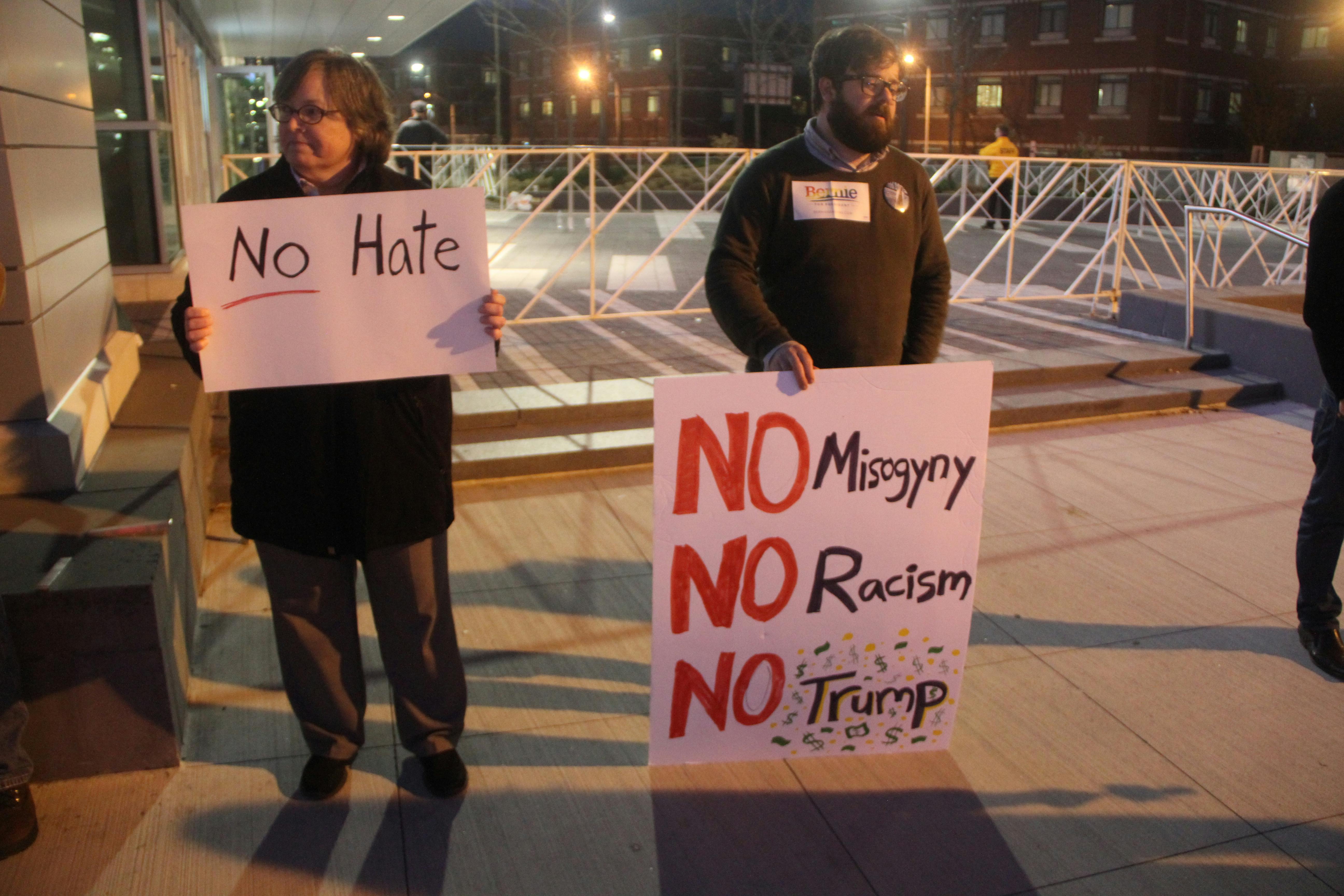 It wasn't all good cheer for Donald Trump. Protestors lined the streets near the entrance of the DCU Center, and could be hear chanting various anti-Trump sentiments.