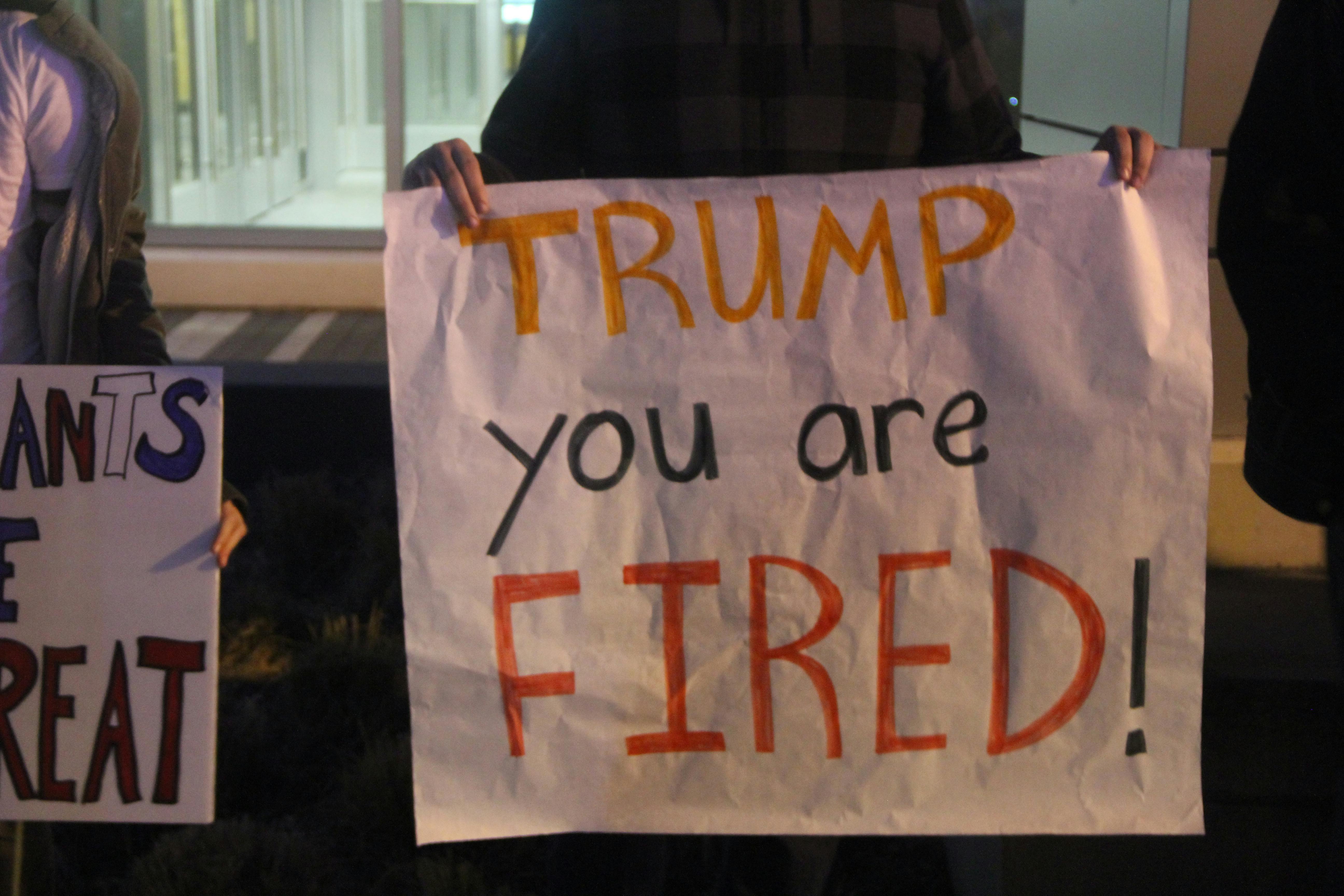 These clever protestors turned Donald Trump's famous catchphrase around on him.