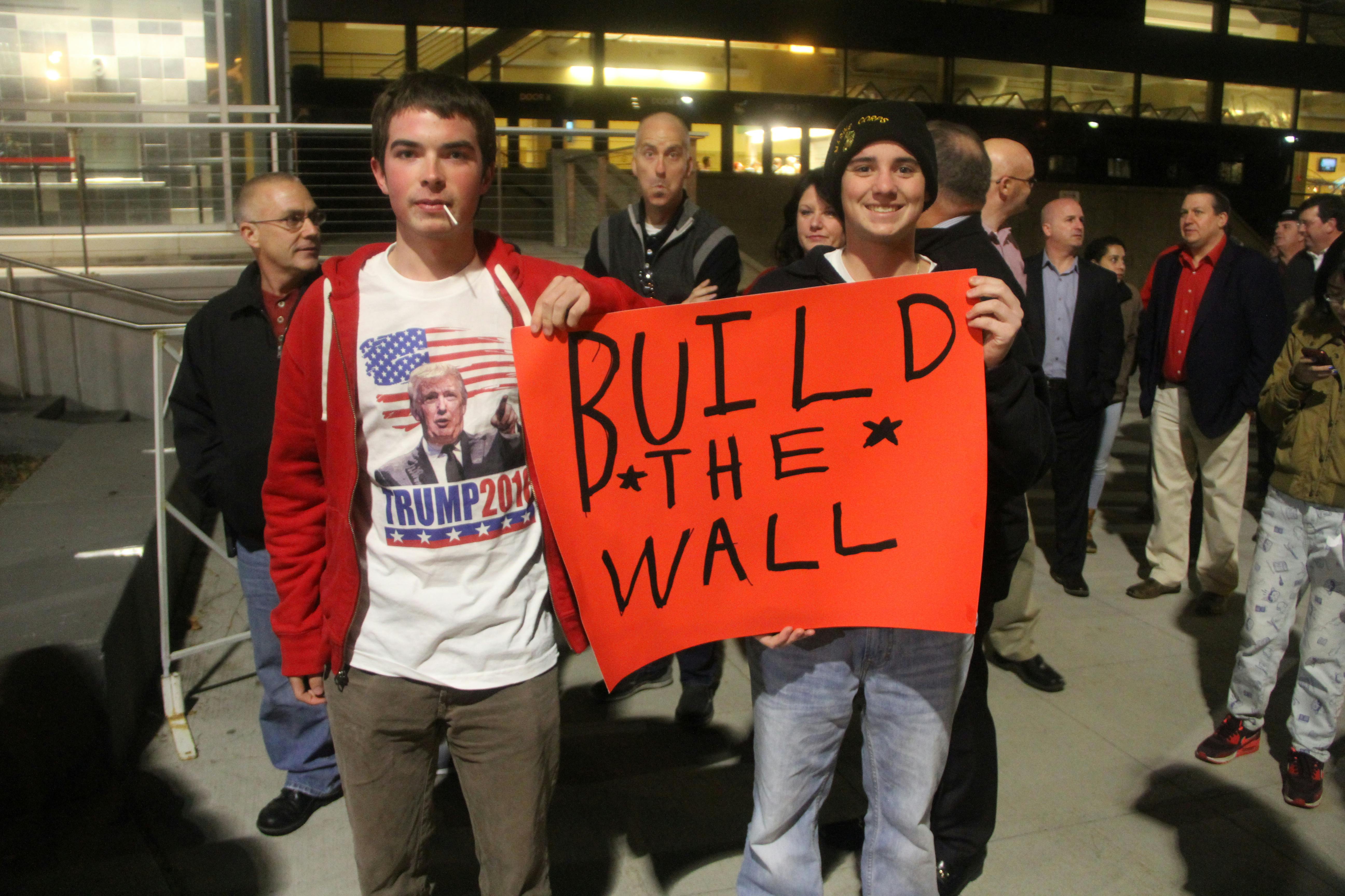 There were plenty of young fans on hand for Donald Trump's speech in Worcester. These two made their feelings on Trump, and his immigration stance, very clear.