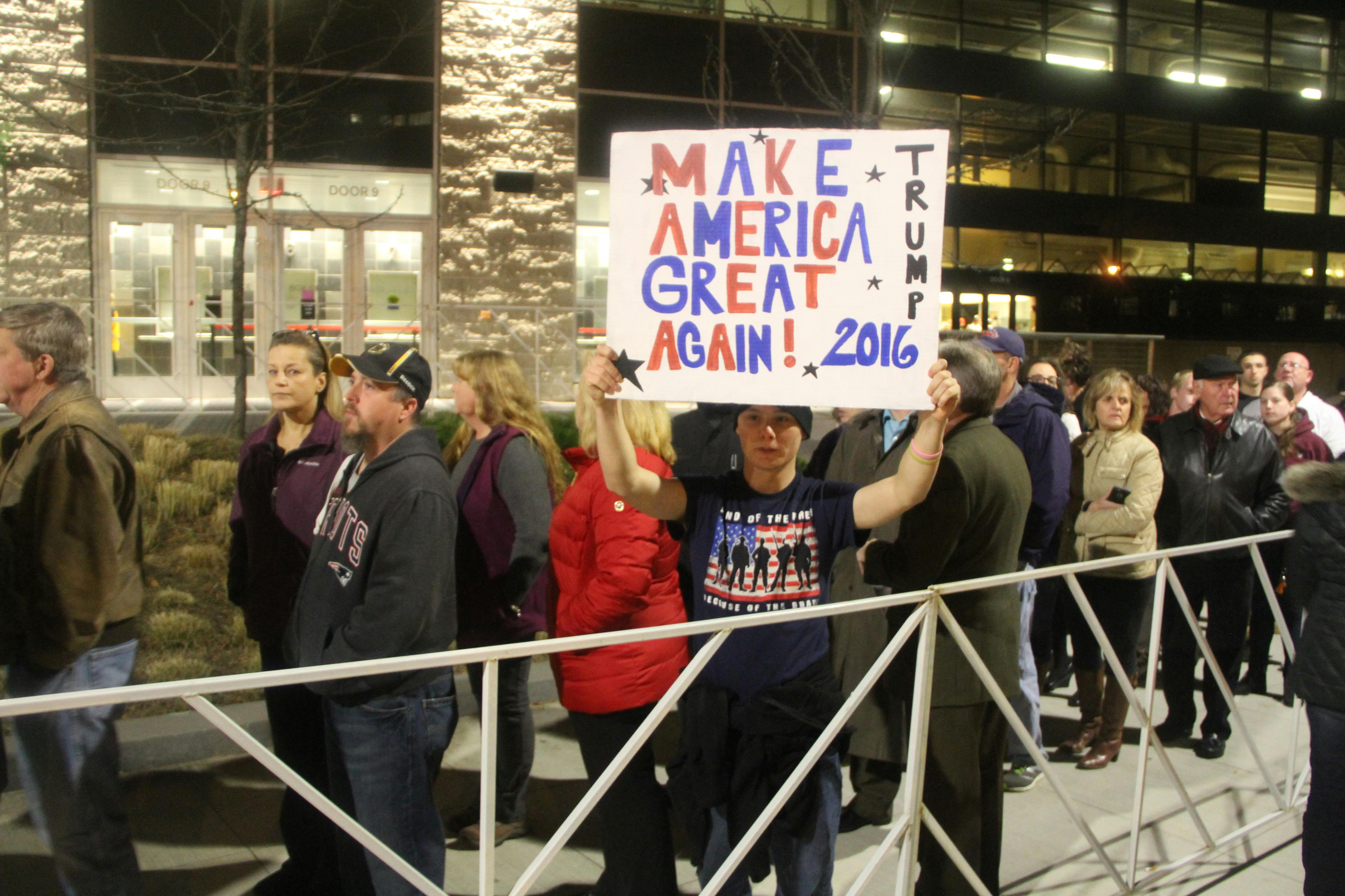 Trump fans like this young supporter made signs of their own to show their support for the Donald. They could be seen dotting the line waiting to enter the DCU Center.