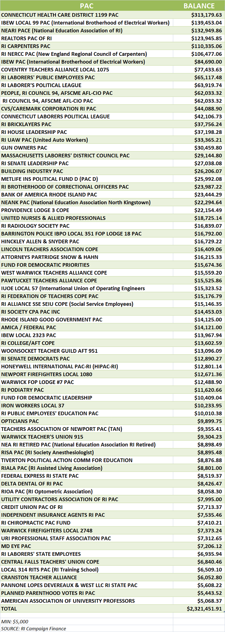 The Groups that Run RI: Which PACs Have the Most Cash?