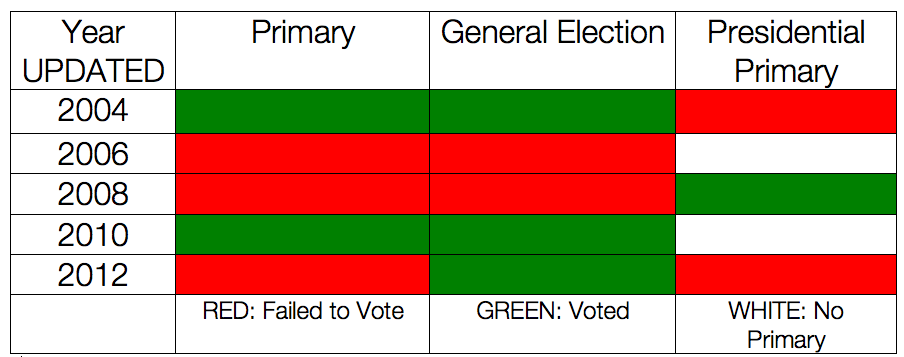 Pell, who is the grandson of United States Senator Claiborne Pell (D-R) also failed to vote in the 2012 primary that included the Congressional race between David Cicilline and challenger Anthony Gemma.