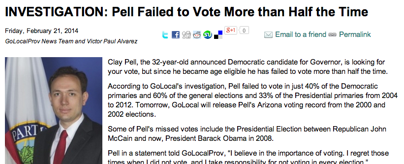The issue of Pell failing to vote more than 50% of the time as an adult was first reported by GoLocalProv in a series of investigative pieces. "We would hope that they correct the error in their commercial. Details matter and it raises questions about other claims the campaign may be making," said Josh Fenton, CEO and Co-Founder of GoLocalProv.com.