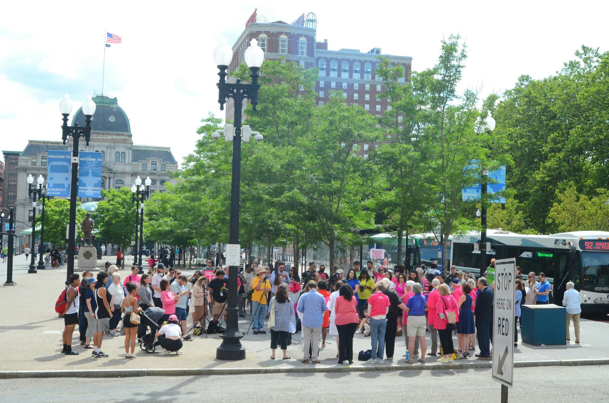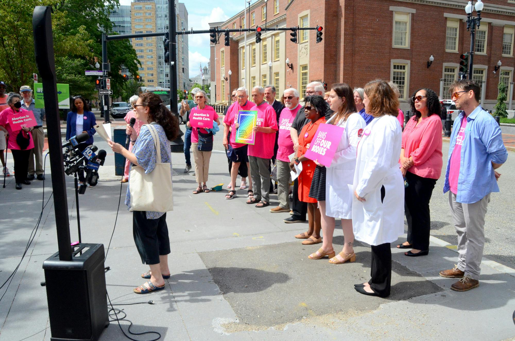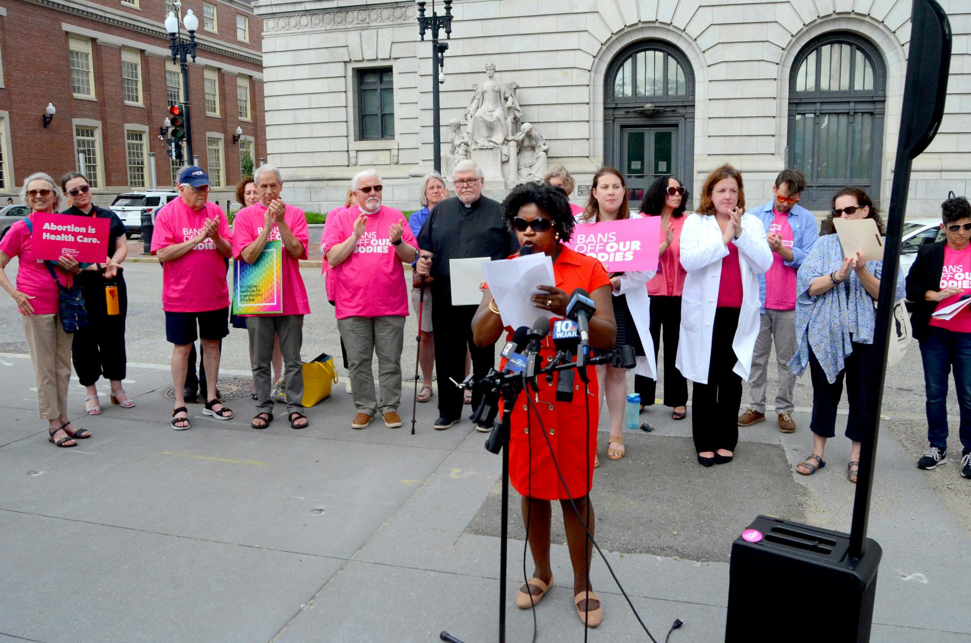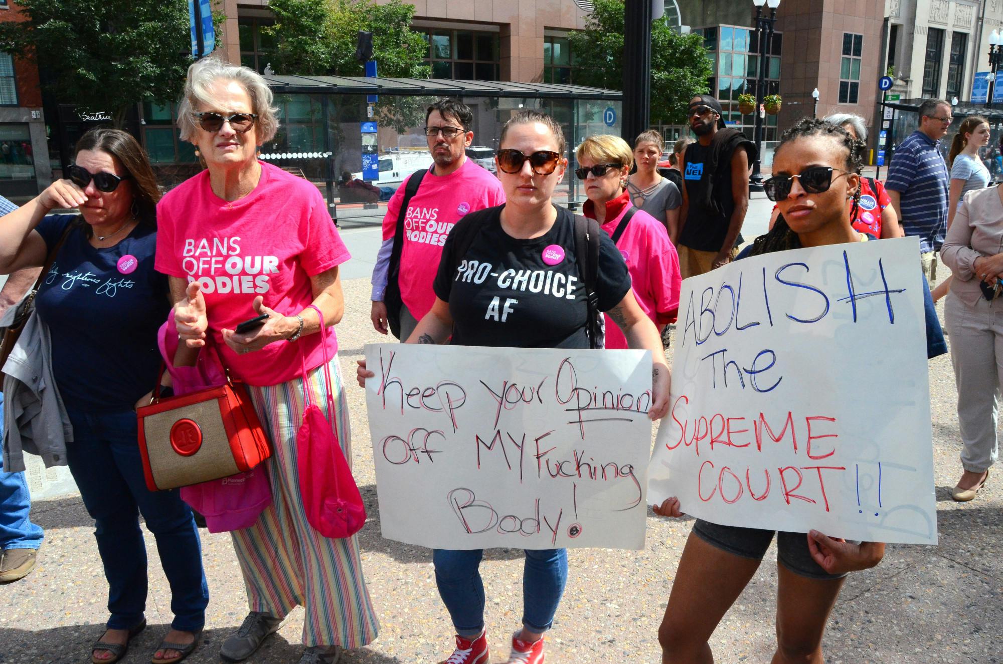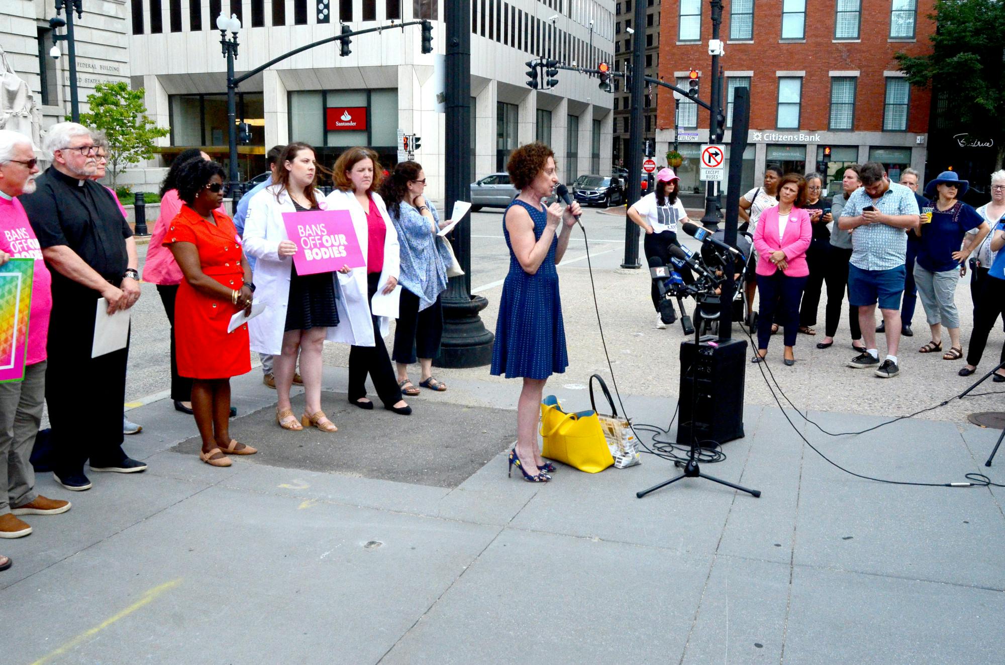 Friday afternoon in front of the federal courthouse building on Kennedy Plaza in Providence, the Coalition for Reproductive Freedom protested the landmark decision by the U.S. Supreme Court overturning Roe v. Wade.