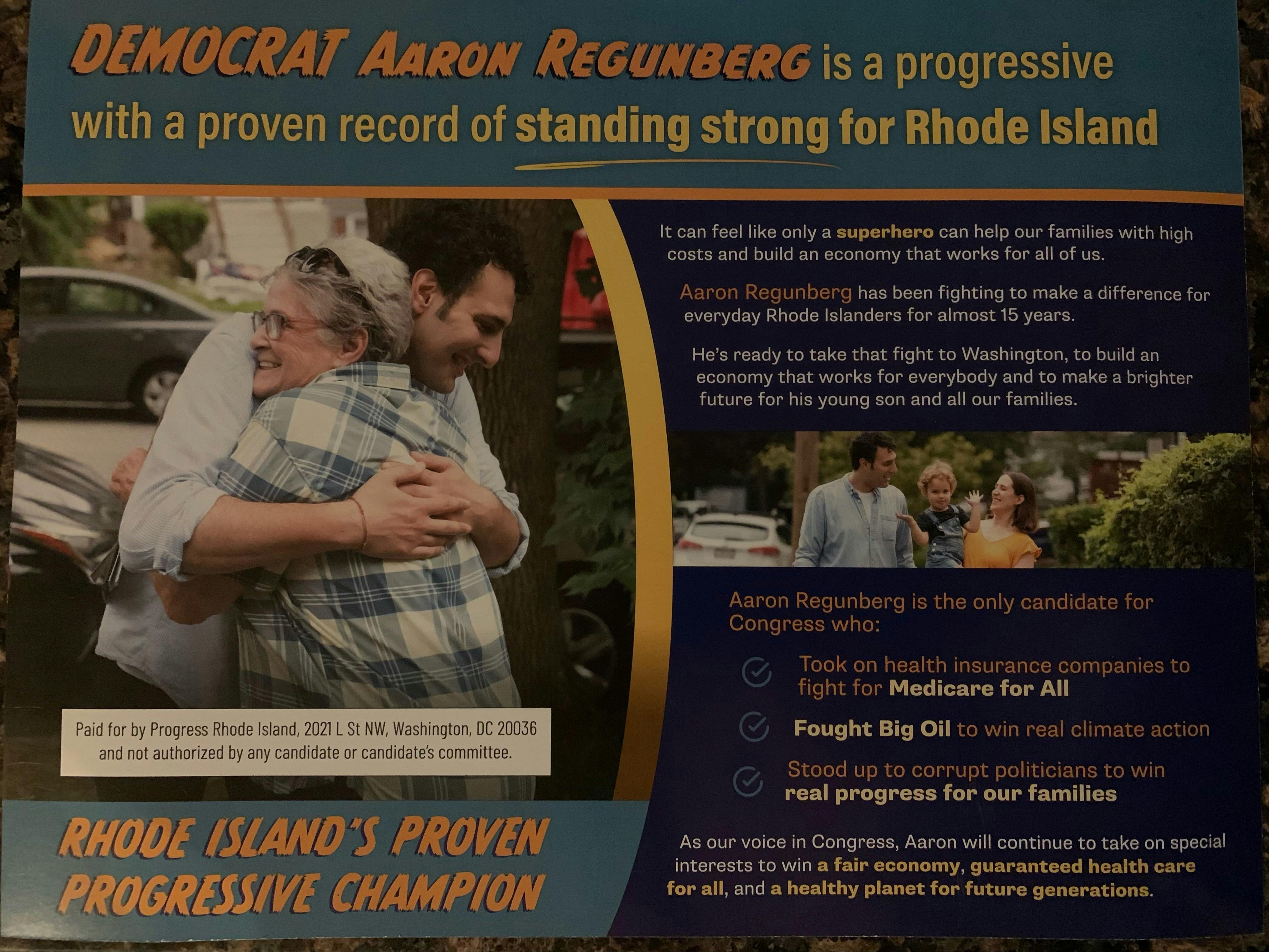 Regunberg campaign spokesperson Matt DaSilva said in a statement to GoLocal, “There are a lot of outside vehicles that are spending heavily in this race for different candidates. In Congress, Aaron is committed to fighting to ban outside spending. Our campaign was not expecting this effort, and there is no coordination taking place. We are grateful for support from a wide range of Rhode Island groups and elected officials.”