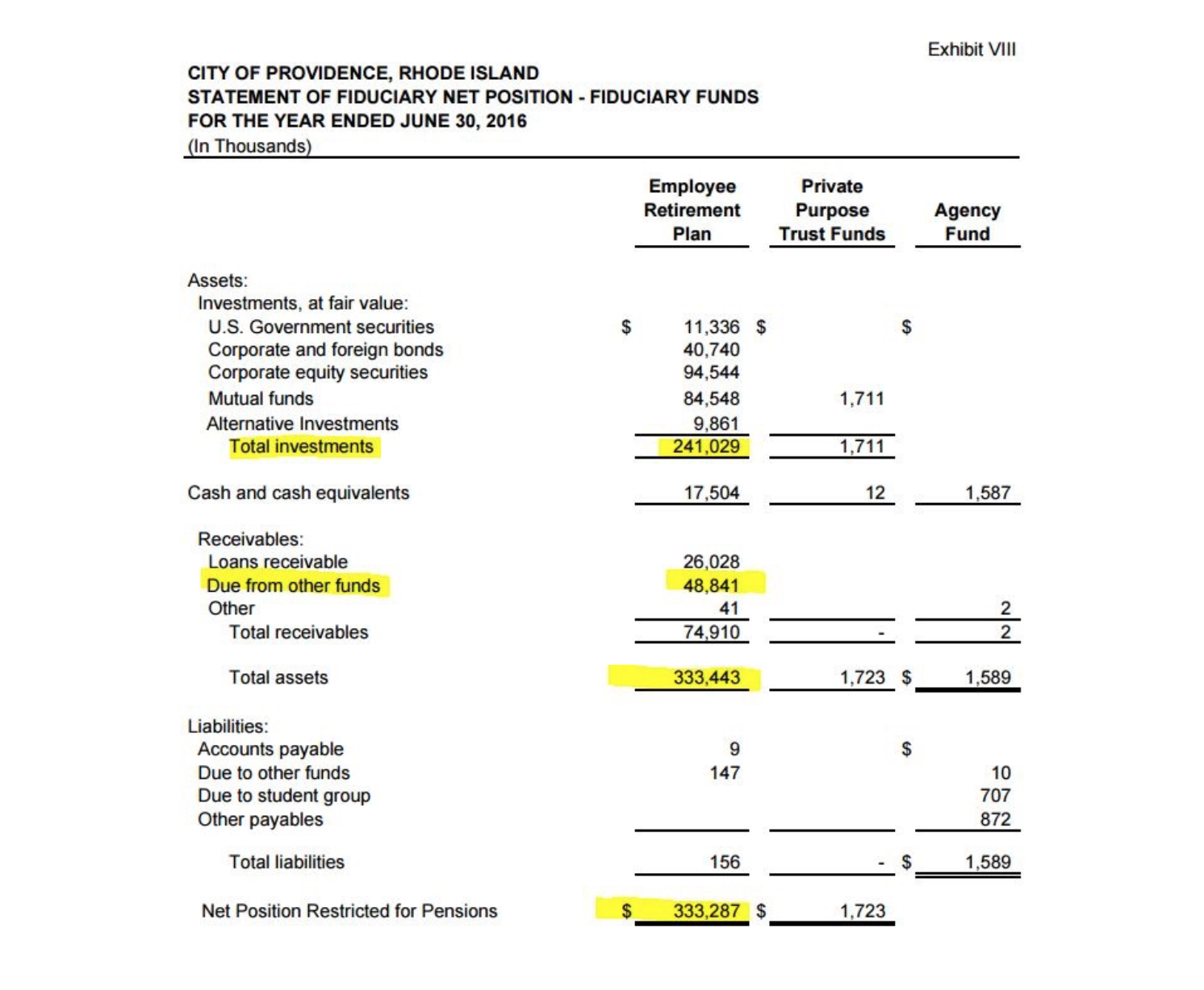Providence returned 2.3% according to Wainwright Investment Counsel LLC on $286,000,000. But that return is only 1.97% when measured on Providence's stated assets of $334 million. Providence remains the only city in the country with such significant differences in Stated assets vs managed assets and I believe the Mayor is deliberately misleading bond investors by using this misleading accounting of their pension plan.