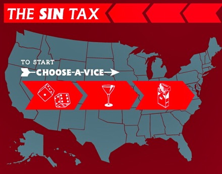 The Bloomberg study considered “sin” taxes any revenue derived from “tobacco, alcohol and pari-mutuels (or betting, usually on horse racing, dog racing and jai-alai) provided by the State Government Tax Collections survey of the U.S. Census Bureau.”