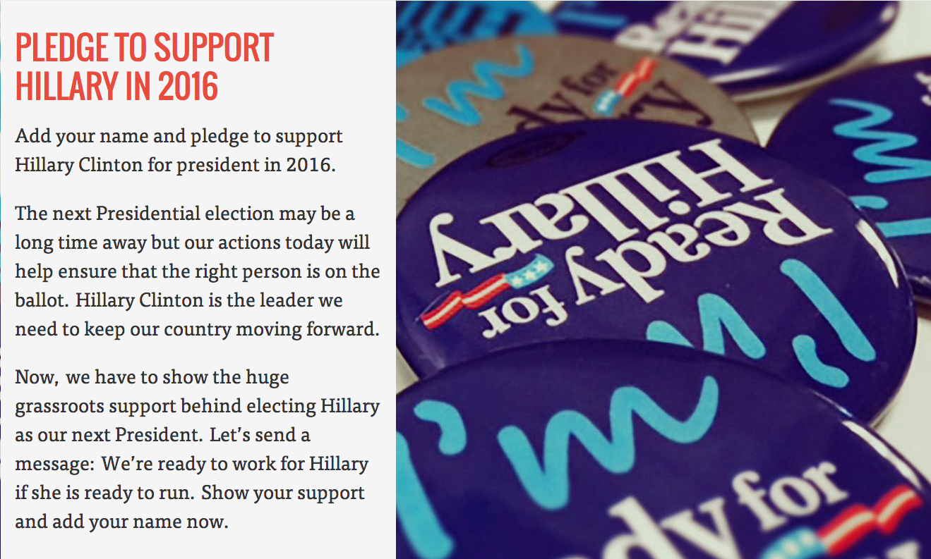 Sign the Ready for Hillary pledge, and say that you'll support Hillary Clinton for president.