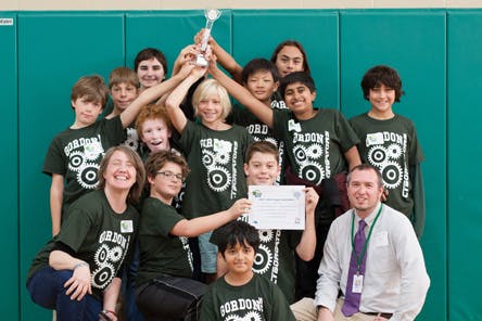 The team from East Providence won first place in the state's FIRST LEGO League State Qualifying Tournament on Saturday, November 21st. As part of the competition, the students invented solutions to help reduce trash and create their own Lego Mindstorms robot to accomplish trash themed "missions" on a playing field.