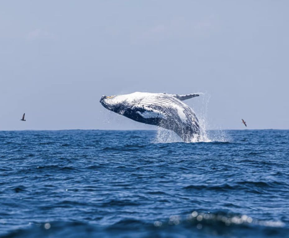 “It was fun,” Miller told GoLocal. “We first spotted two Humpbacks breaching simultaneously, and when we got up closer they kept it up.”