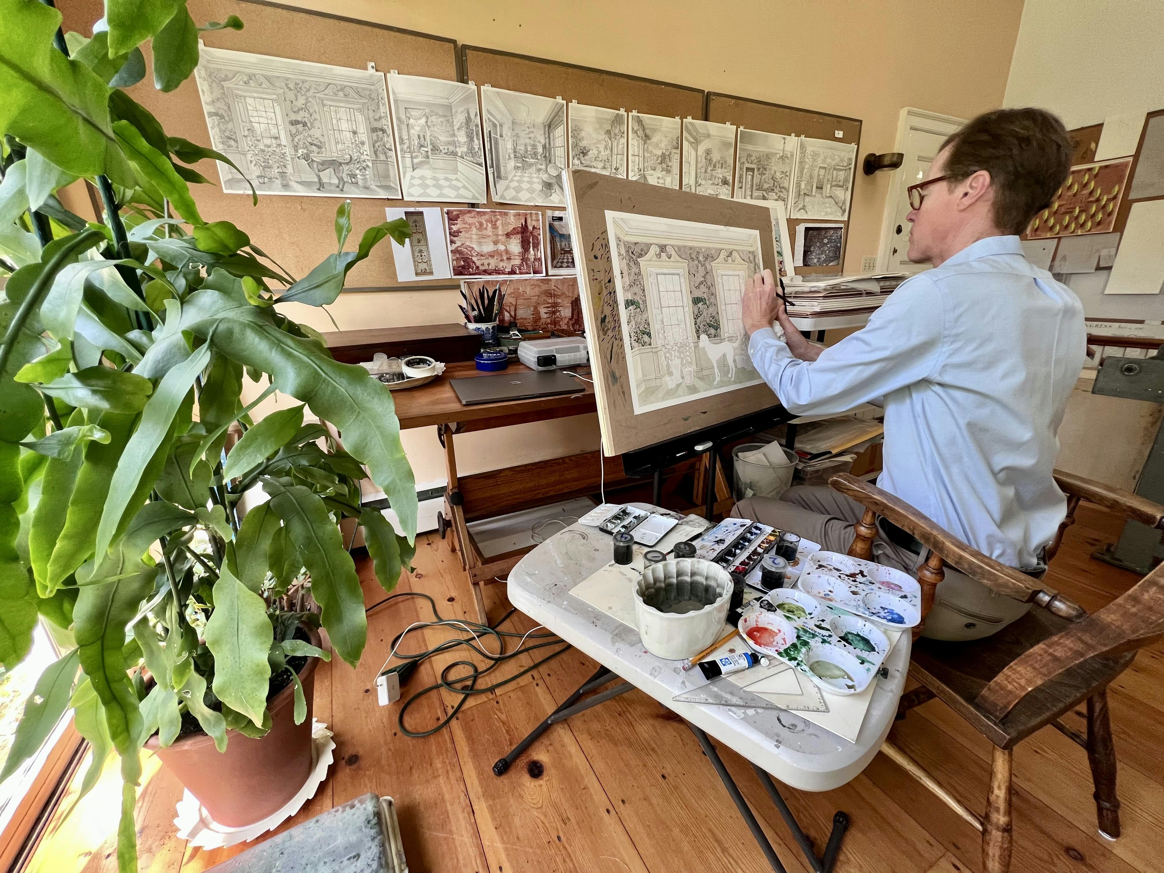 RISD Professor Andrew Raftery is one of the printmaking community’s most respected practitioners. An artist who is dedicated both to craft and to a deep study of the history of his medium, he makes intricately designed and carefully thought-out artworks. Many of these are conceived of and created in his studio in the heart of College Hill in Providence.