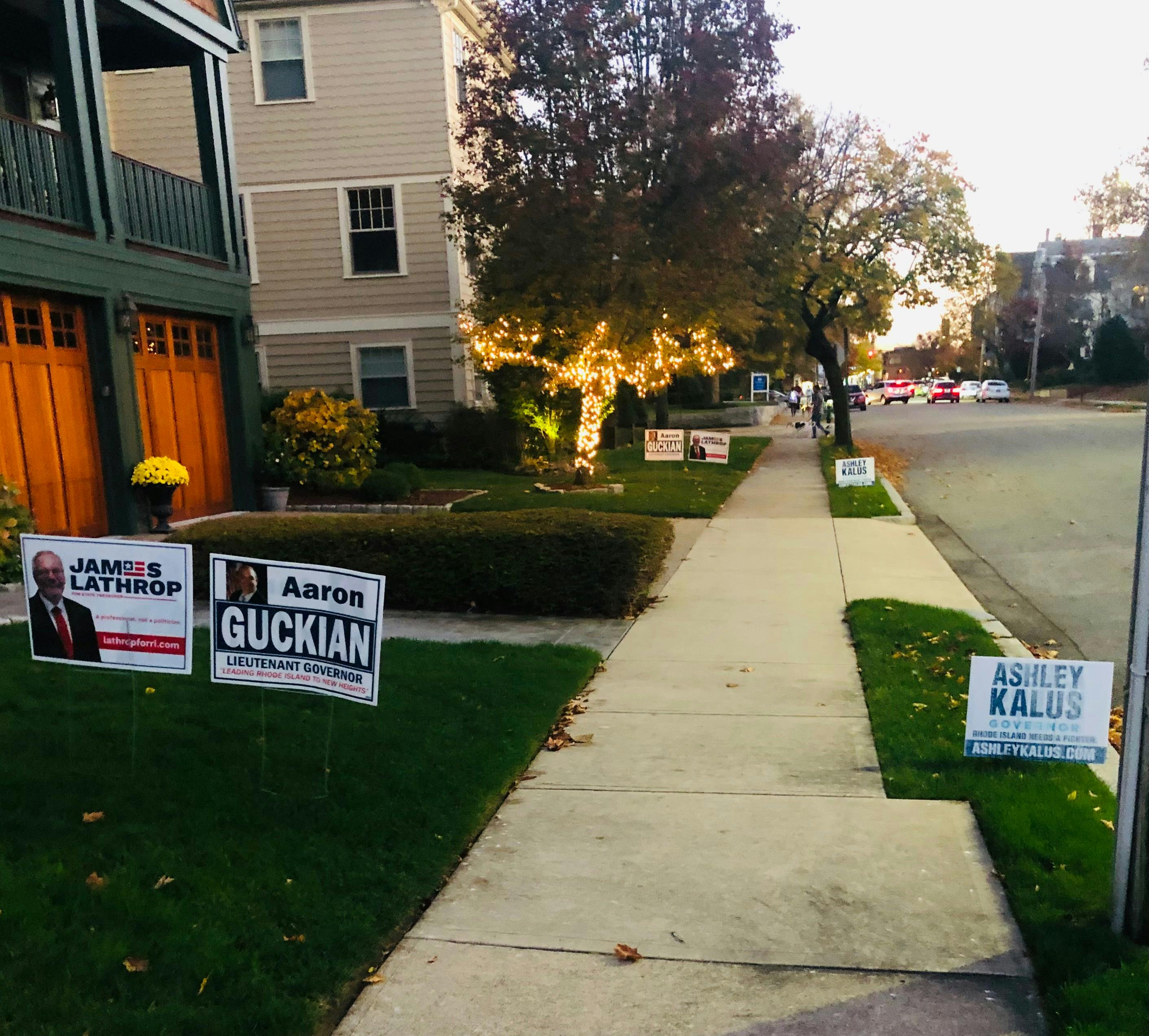 The front lawn of Providence businessman Ray Mathieu's house is currently the greatest predictor of election results.