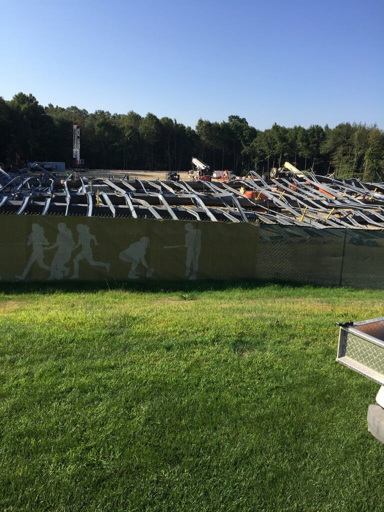 The school year got off to a bad start for Bryant University as what was supposed to be the school's new training facility partially collapsed on Tuesday morning, injuring six individuals (reportedly, none of the injuries are life threatening). The new training facility was supposed to open this winter and include a full sized-football turf field for training for lacrosse, field hockey, football and other sports.