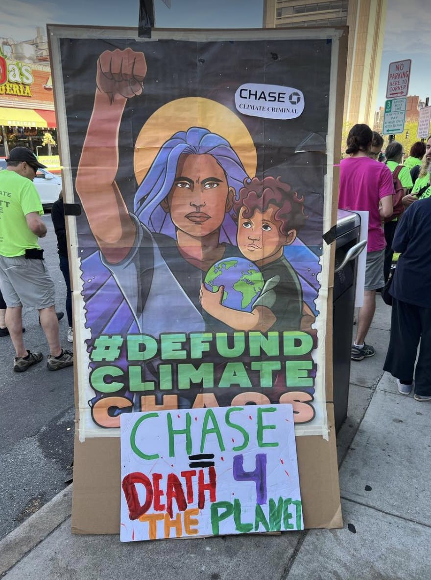 "We continue to contact and call upon the major shareholders of Chase stocks - especially Vanguard, BlackRock, State Street, and state treasurers - to vote yes on the resolution," said protest organizers.