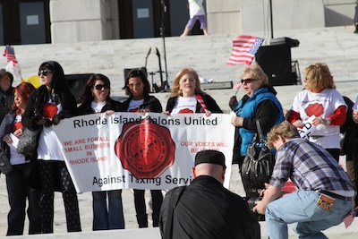 Among the other speakers was Richard Bump, who leads the group of salon owners who came together to fight against Chafee’s proposed sales tax. Bump said his group, “Rhode Island Salons United Against Taxing Services,” now has 520 members.