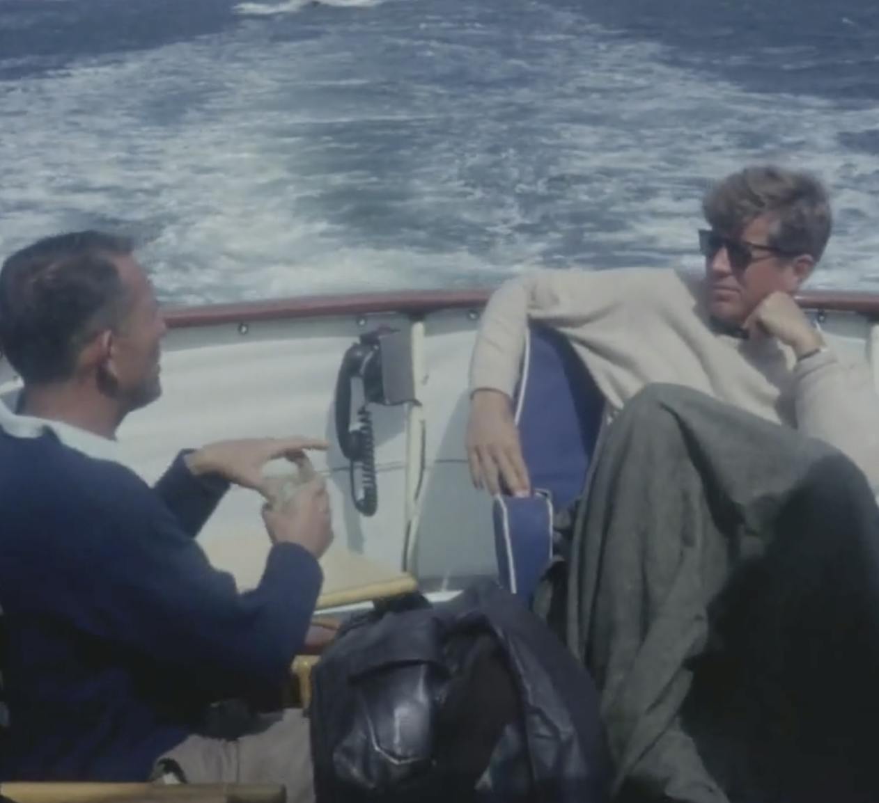 According to the JFK Library, included in the video is footage of President Kennedy, First Lady Jacqueline Kennedy, Caroline Kennedy, John F. Kennedy, Jr., journalist Ben (Benjamin C.) Bradlee, his wife Antoinette Bradlee, Senator Claiborne Pell of Rhode Island, his wife Nuala Pell, John Ryan, Mrs. Ryan, and Hugh Ryan, Jr., and others who are unidentified.