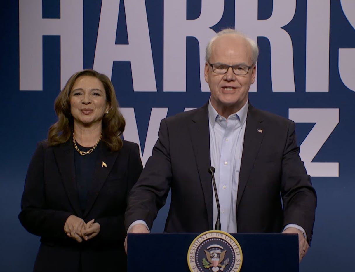 News anchor David Muir (Andrew Dismukes) checks in with Kamala Harris (Maya Rudolph), Tim Walz (Jim Gaffigan), Doug Emhoff (Andy Samberg), Donald Trump (James Austin Johnson), JD Vance (Bowen Yang) and Joe Biden (Dana Carvey) at Harris' and Trump's campaign rallies.