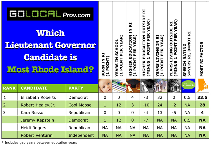 GET THE LATEST BREAKING NEWS HERE -- SIGN UP FOR GOLOCAL FREE DAILY EBLASTJust to be clear, this evaluation is purely fact-based. Candidates got points for each year they went to school or worked in the state, and correspondingly, lost points for heading off to some foriegn land like going to college at some distant place, such as University of Connecticut or UMass.