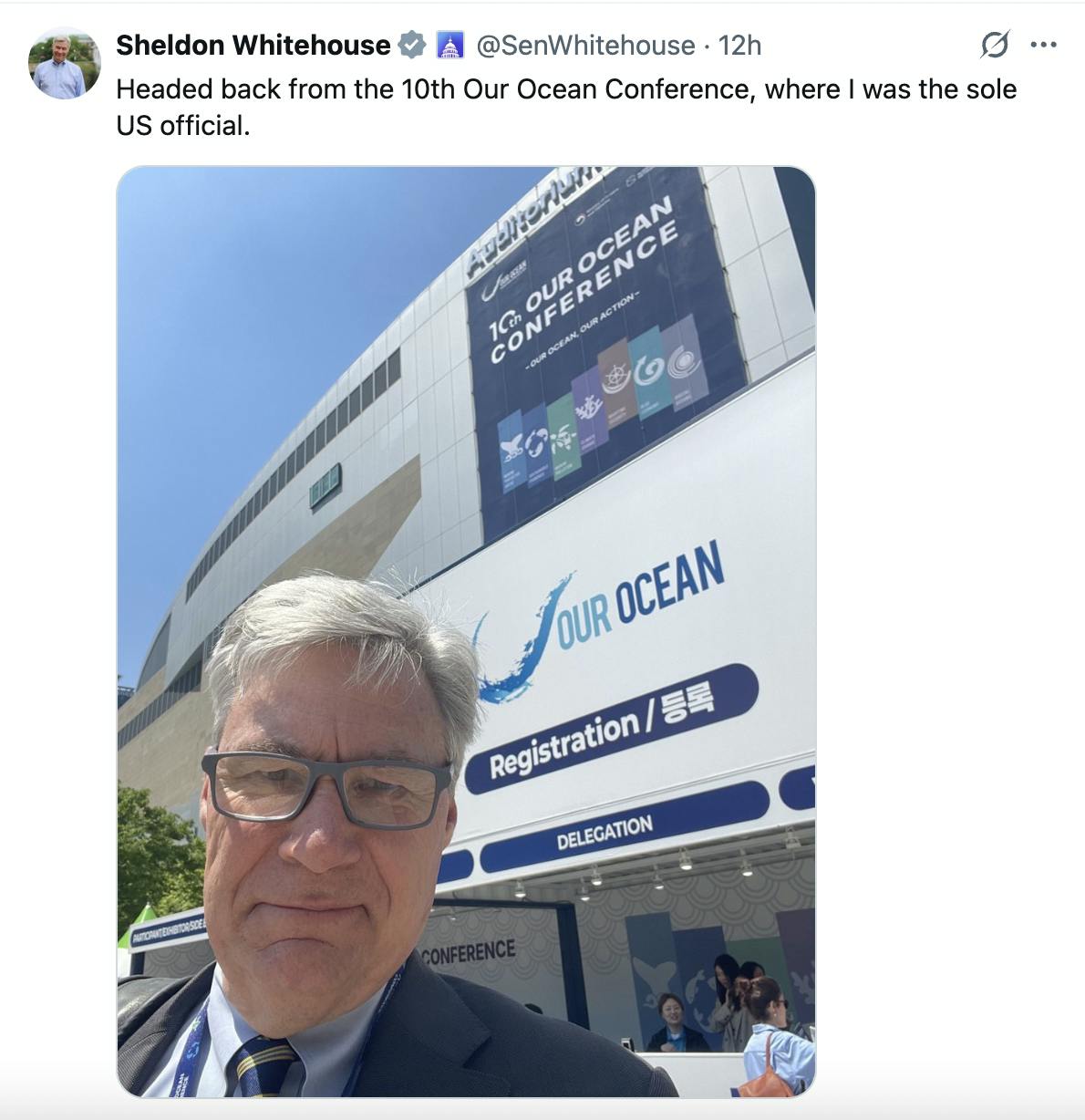 A prolific tweeter, Whitehouse did not address missing the vote on X. But he did post, "Headed back from the 10th Our Ocean Conference, where I was the sole US official."