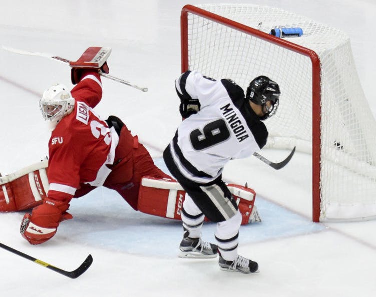 Brandon Tanev recorded the game winning goal for PC. Tanev took the puck off a PC face off win and fired a shot top shelf from the slot that beat O'Connor giving the Friars a 4-3 lead with 5:30 seconds left.