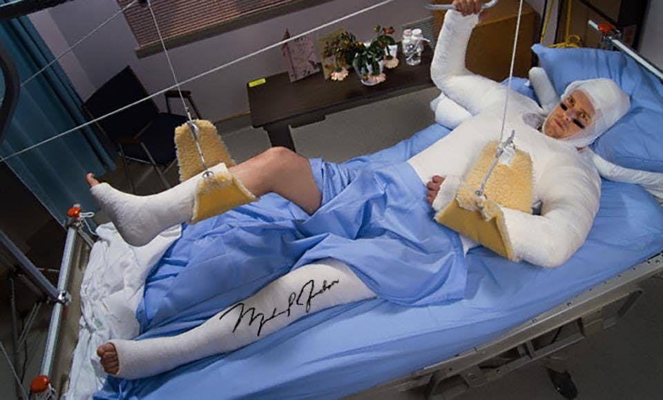 Brady blamed the full body cast on NBA legend Michael Jordan, saying "Jordan's Crossover is no Joke" on the post.