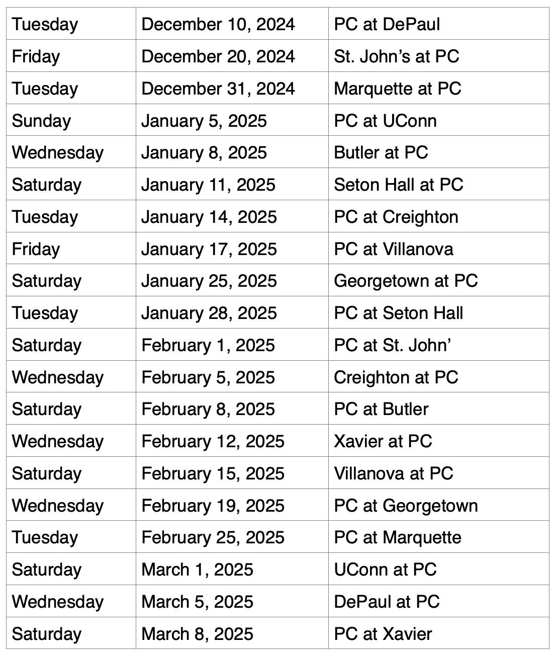 --Three out of four of PC’s final games in January are away games, a tough test for the Friars.