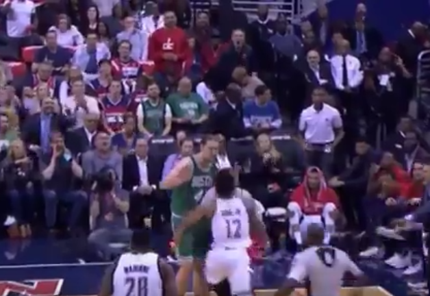 In the second quarter following a screen set by Boston's Kelly Olynyk on Washington's Kelly Oubre, the play was whistled dead for a foul on Olynyk.