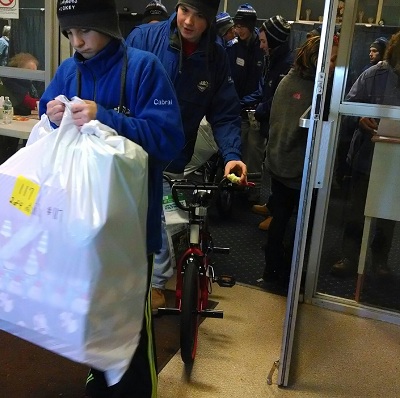 And yet, clad in their matching Clipper-blue winter jackets, the Cumberland High School hockey team stood outside for hours on end, volunteering their services to the Adopt-A-Family agency on Social Street in Woonsocket. Lifting large, black trash bags packed with presents into and out of cars, trucks, and vans, the Clippers played the role of Santa’s elves for hundreds of children hoping for presents under the tree this year.
