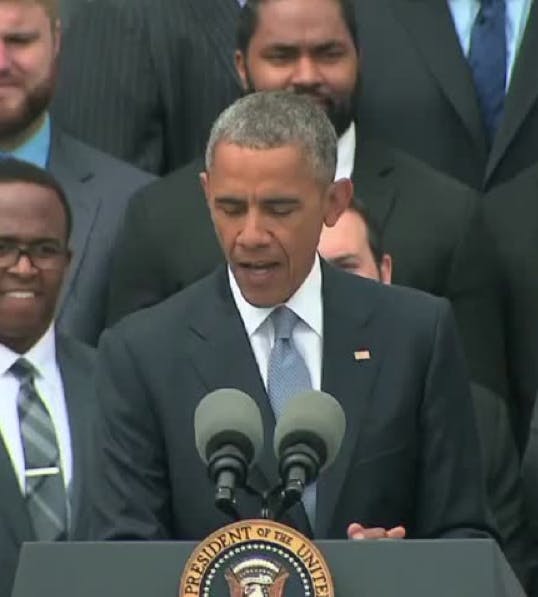 President Obama welcomed the Patriots to the white house to celebrete their Super Bowl Championship and then cracked a deflategate joke.