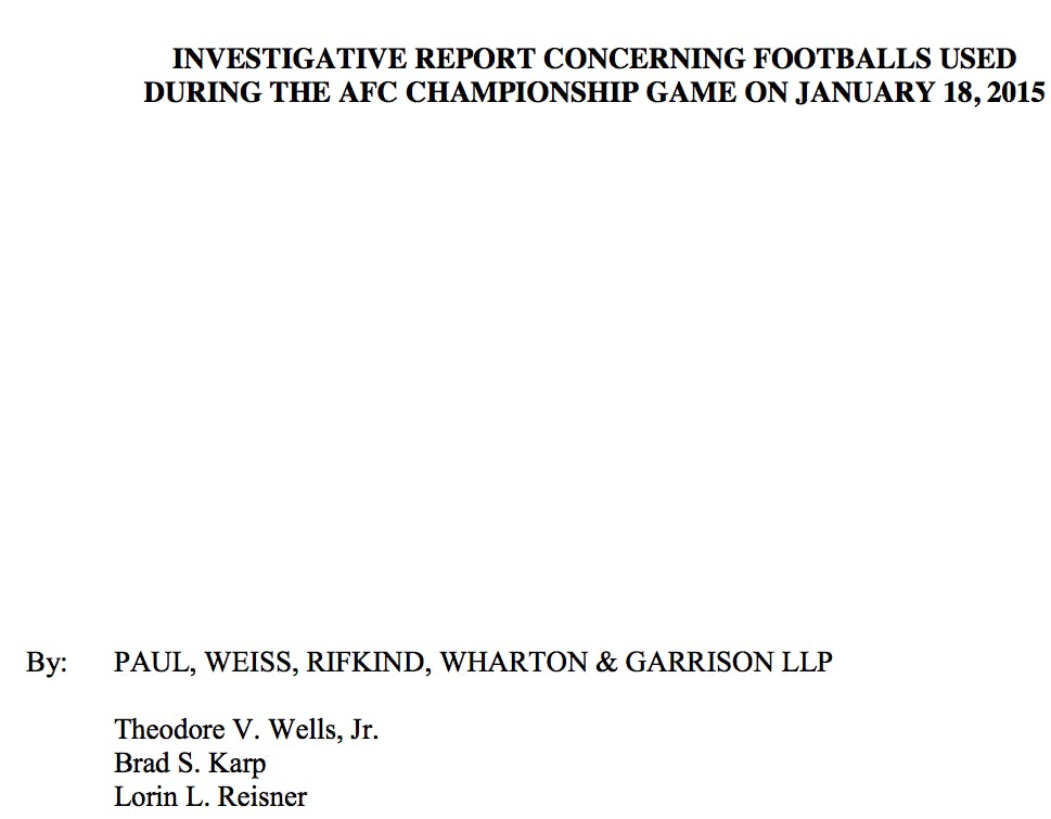 The report stated that "it is more probable than not that the New England Patriots personnel participated in violations of the Playing Rules and were involved in a deliberate effort to circumvent the rules. In particular, we have concluded that it is more probable than not that Jim McNally (the Officials Locker Room attendant for the Patriots) and John Jastremski (an equipment assistant for the Patriots) participated in a deliberate effort to release air from Patriots game balls, after the balls were examined by the referee."