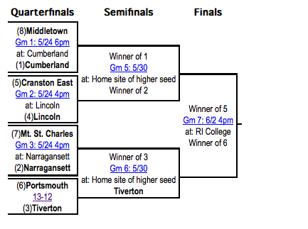 GET THE LATEST BREAKING NEWS HERE -- SIGN UP FOR GOLOCAL FREE DAILY EBLASTThe semifinal round is scheduled for May 30 with the higher seeds playing host. The championship game is set for 4 p.m. on June 2 at Rhode Island College.