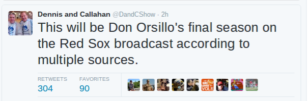Orsillo has been with the Red Sox since 2001 after five years as the play-by-play announcer for the Pawtucket Red Sox. He became the full-time announcer in 2005. In 2011, Orsillo signed a multi-year deal that kept him in the announcer's booth until the end of this season.