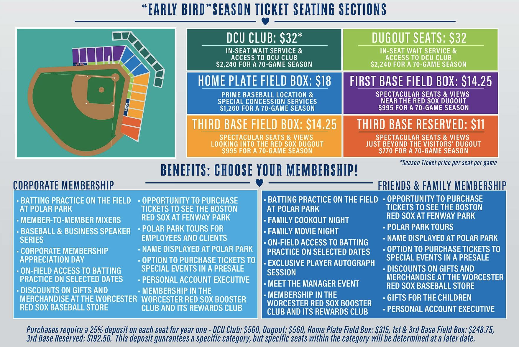 Early bird season tickets are now on sale for the Worcester Red Sox.Early bird season tickets to the Worcester Red Sox are now on sale.