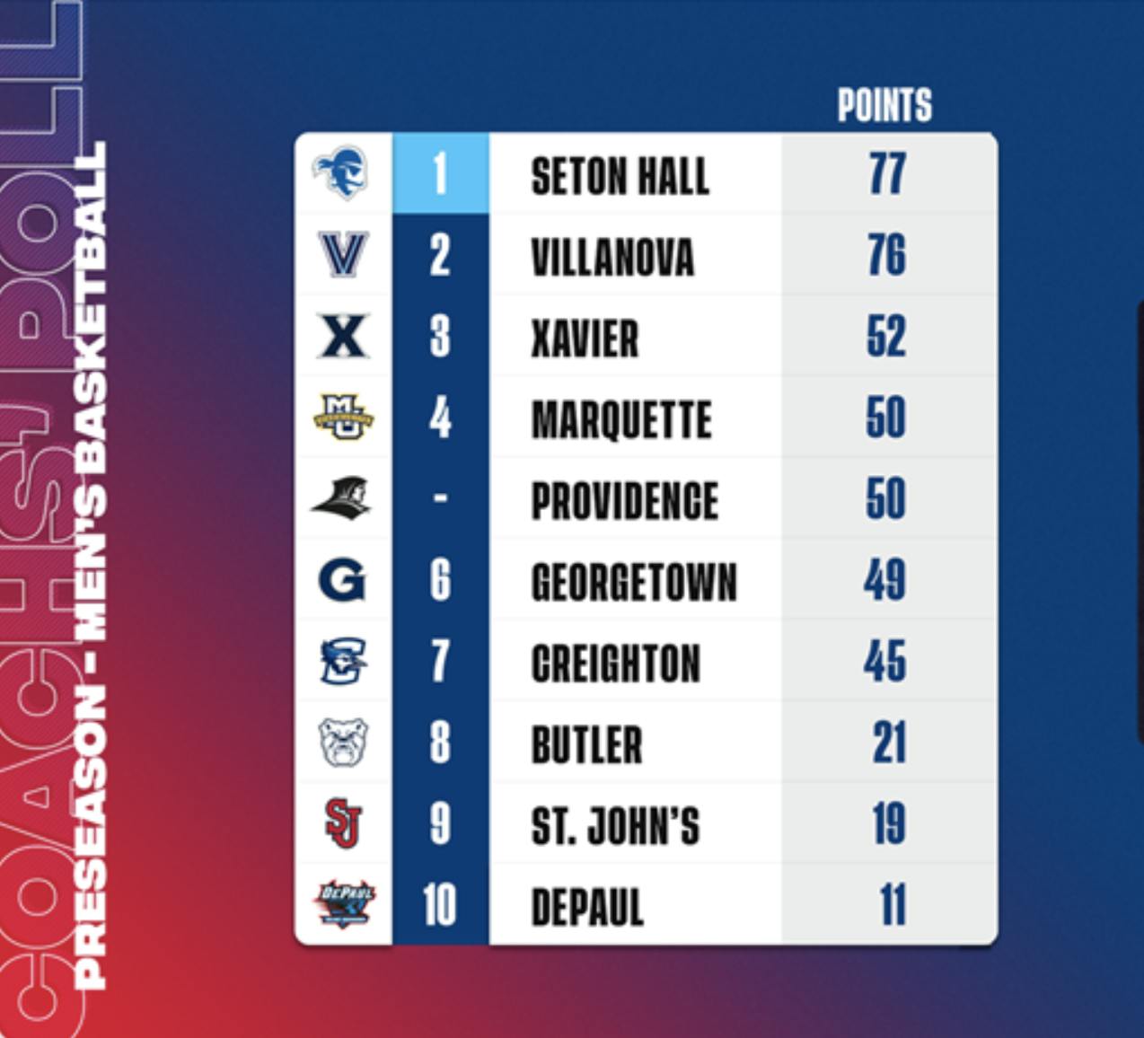 Last season, the Friars finished 18-16 overall and 7-11 in the Big East. PC went on to lose to Villanova in the second round of the Big East Tournament at Madison Square Garden in New York.