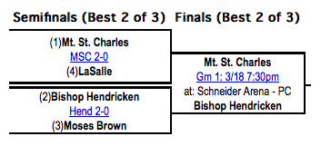 With 29 goals and counting, offensive powerhouse Trevor Plante will look to continue the Mounties reign in RI Div. I hockey. Seniors, Zack Samborsky, Mike Magerman, and Alex Erban will also pose a threat for the Hawk’s defense with their combined 82 regular season goals.