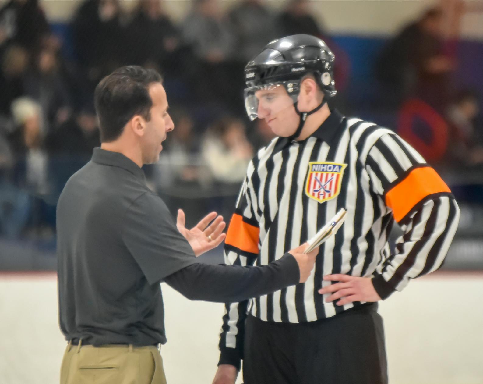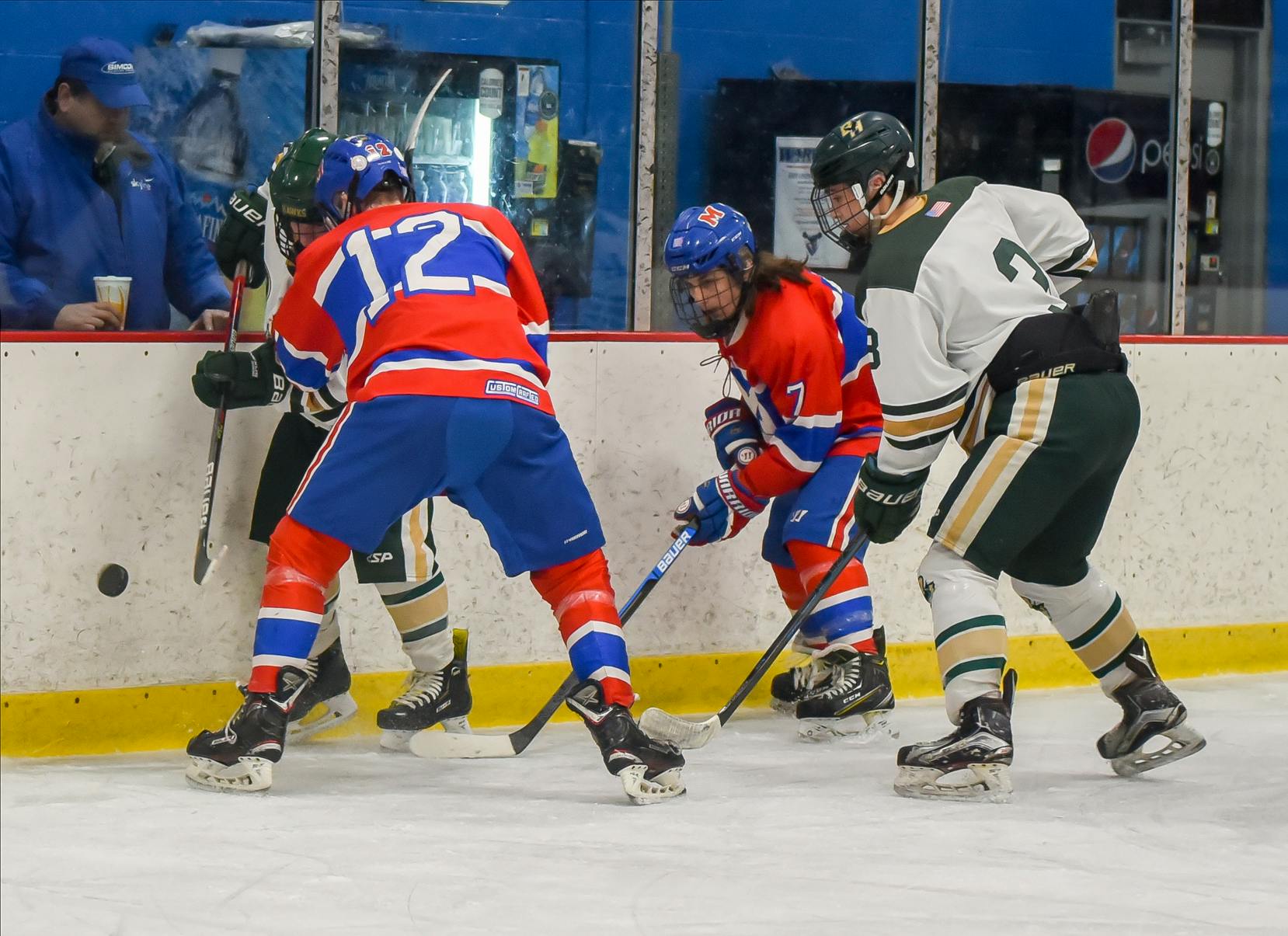 The Mount Saint Charles Mounties edged the Bishop Hendricken Hawks 5-4 at Thayer Arena in Warwick.