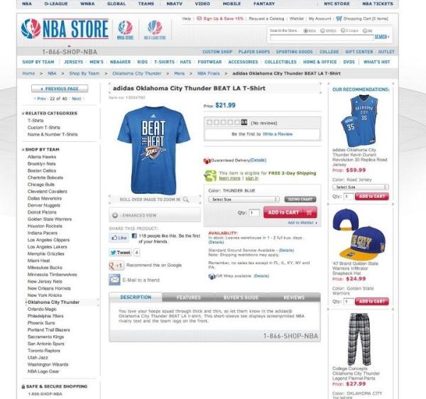 NBA Selling "OKC Beat The Heat" T-Shirts