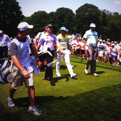 The final group to tee off was undoubtedly the most talented, featuring 2012 Masters champion Bubba Watson, 2010 PGA rookie of the year Rickie Fowler, 2010 Open Championship winner Louis Oosthuizen and three-time CVS Caremark Charity Classic champion Nick Price. Watson did his part to keep the spectators entertained. As he approached the tee-box on the 361 yard par-4 third hole, the crowd urged Bubba to go for the green with his illustrious pink driver. Watson obliged, and although his tee-shot found the water about ten yards short of the green, the gesture hinted at the nature of the tournament.