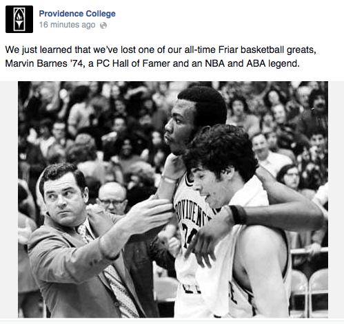 GET THE LATEST BREAKING NEWS HERE -- SIGN UP FOR GOLOCAL FREE DAILY EBLAST"Barnes was the center of the Friar offense and team MVP in 1973 and 1974. The 1974 NCAA national rebounding champion, he was a consensus First Team All-America, Eastern Player of the Year and Most Valuable Player in both the Aloha Classic and East-West All-Star games. Barnes was the second pick in the 1974 draft who later became the Rookie of the Year in the ABA where he played for two seasons. He moved on to the NBA for four seasons. Barnes was named to the ECAC All-Decade team for the 1970's. He still holds Providence game, season and career records for rebounds and blocks," writes PC on its athletics website.