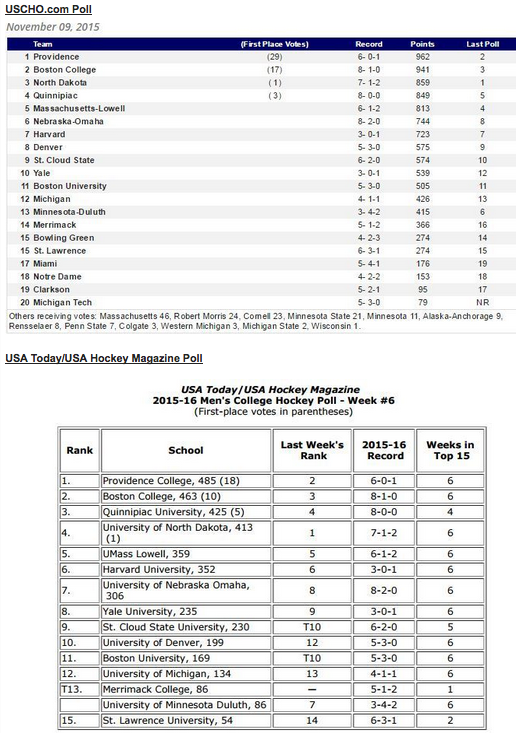 PC earned 29 first place votes in the USCHO.com poll and 18 first place votes in the USA Today/USA Hockey Magazine poll. This is the first time the Friars have been ranked number one in hockey since 1983 under Lou Lamoriello.