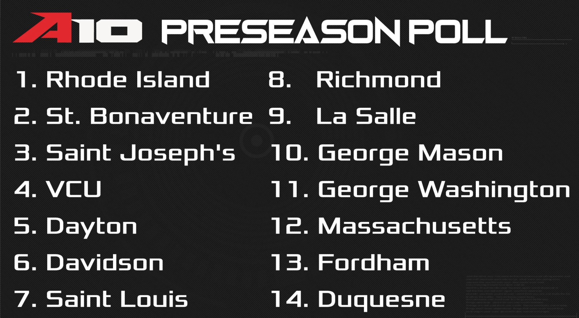 The Rams received all but one of the 28 first-place votes in the poll, finishing with 390 points overall, putting them ahead of St. Bonaventure, who received one first-place vote and was second in the poll with 345 points.