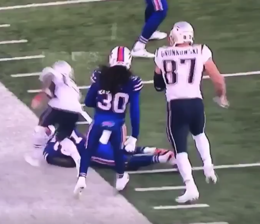 What a shocker. The world's douchiest frat boy Rob #Gronkowski can't control himself, takes a big cheap shot on Bills DB. pic.twitter.com/VBuA2XVKNR