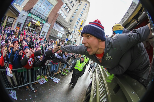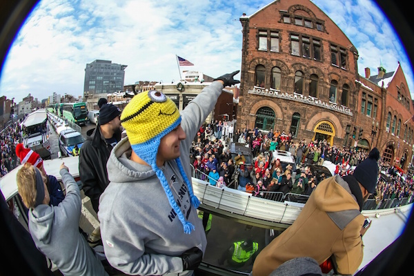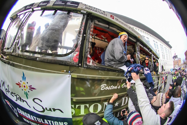 New England Patriots' tight end Rob Gronkowski made an appearance Wednesday on the Mohegan Sun Duck Boat during the Patriots Super Bowl victory parade. Things went pretty much like you'd imagine...see the photos below.