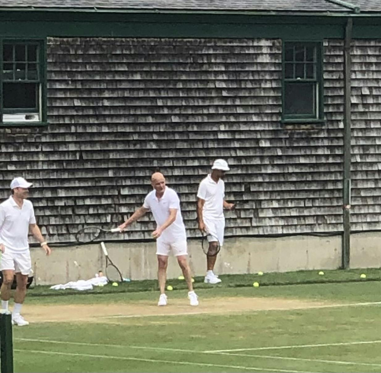 Agassi put on a clinic on Saturday with some local tennis players.