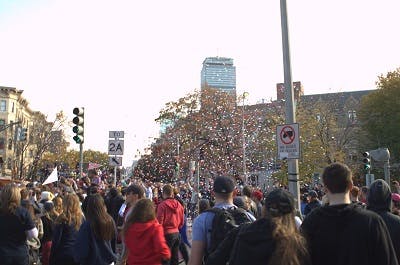 A look down Boylston. Fans as far as the eye can see.