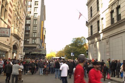 The scene at the Boylston/Tremont intersection was a borderline mosh pit of fans.