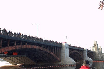 The bridge crowd goes crazy for evey boat that passes underneath.