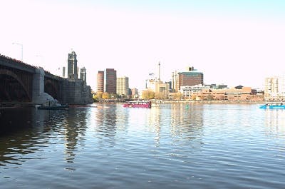 Fans were willing to risk safety in order to get a better glimpse of the procession down the Charles.