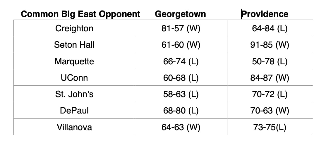 Will the Friars, facing a better Georgetown squad this year, and without Devin Carter and likely without Hopkins, be able to find a way to beat their old coach? Which Georgetown team will show up this Saturday at the AMP—the one that crushed Creighton by 27 points or the one that got flattened by DePaul? Let’s hope it’s the latter.